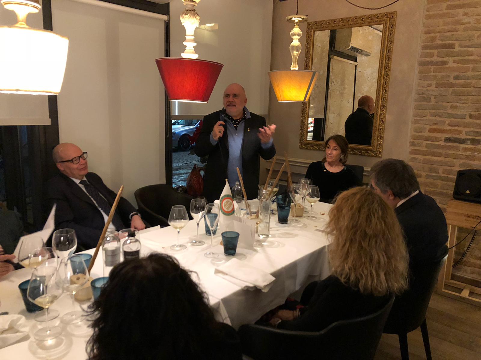 La Delegazione di Fermo, in occasione della riunione conviviale degli auguri, si è riunita presso il ristorante "I Piceni". Simposiarca della serata il Consultore Cristofaro La Corte. Foto 1: il Delegato Fabio Torresi in un momento della serata. Foto 2 e 3: alcuni piatti presentati in occasione della serata dallo chef Giampiero Giammarini.