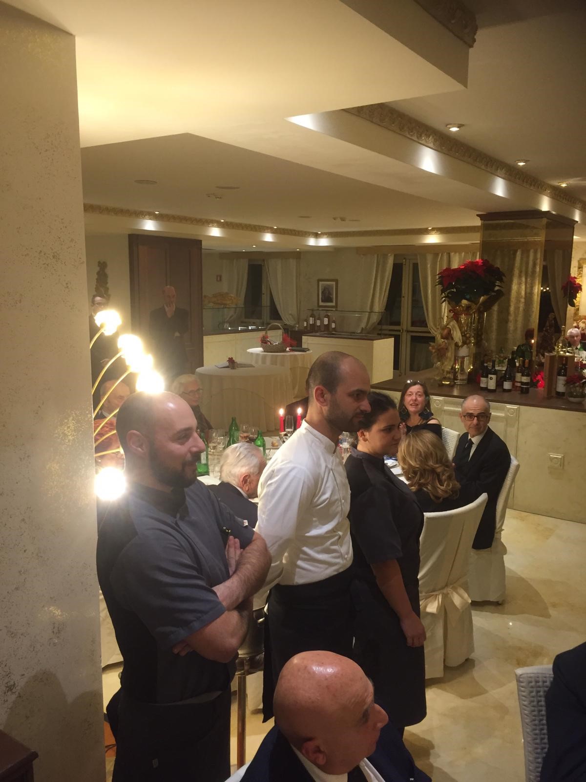 La Delegazione della Versilia Storica si è riunita, in occasione della riunione conviviale degli auguri, presso l'hotel "Imperiale" di Forte dei Marmi, alla presenza del Presidente Paolo Petroni e la moglie Roberta Petroni. Foto 1: il Presidente Paolo Petroni con Roberta Petroni (a sinistra) e la Delegata della Versilia Storica Anna Ricci Pinucci. Foto 2: un saluto della brigata di cucina. Foto 3: un piatto realizzato in occasione della cena.