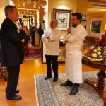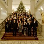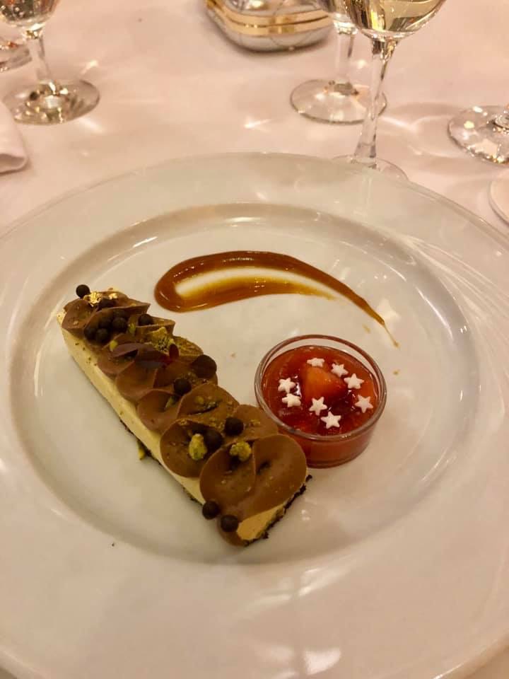 La Delegazione di Budapest ha organizzato il “Gala degli auguri” presso il "Grand Hotel Corinthia". Foto 1: All’evento hanno partecipato molti Accademici e ospiti tra cui S.E Massimo Rustico Ambasciatore d’Italia accompagnato dalla Consorte Monica, S.E. il Consigliere del Segretario di Stato alla Cultura ungherese Lonkay Gabriella e l'Accademico Onorario S.E ex Nunzio Apostolico Alberto Bottari de Castello. Foto 2: la sala riservata all'evento della Delegazione. Foto 3: gamberi tigre marinati, tonno pinna blu con lime soia salsa di mango e base di nocciole. Foto 4: sensazione di pistacchio e cioccolato, vasetto di salsa alle fragole e caramello.