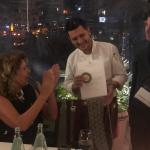 La Delegazione di Siracusa si è riunita per gli auguri di Natale presso il ristorante "Incanto" del Luxury Hotel "Ortea Palace" in Ortigia. Foto 1: (da sinistra) Dott. Carmelo Frittitta Direttore Generale dell'Assessorato all'Agricoltura della Regione Sicilia, Cettina Pipitone Voza Direttore CST - Sicilia Orientale, Angelo Tamburini Delegato di Siracusa e Vittorio Sartorio Delegato di Ragusa. Foto 2: Carmelo Frittitta che ha relazionato su"Il ruolo del Cibo per l'Agro-Alimentare Regionale" e Angelo Tamburini. Foto 3: il Delegato Angelo Tamburini consegna il guidoncino al Mâitre sommelier Marco Torrisi e all'executive chef Salvatore Barbara. Foto 4: sfinci di ricotta zucchero e cannella.