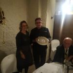 La Delegazione di Potenza si è riunita presso il ristorante "Sotto la Torre" in occasione della riunione conviviale degli auguri. Foto 1: la Delegata Anna Paola Vergari e il Vice Delegato Giudo Bonifacio consegnano il Diploma di Buona cucina allo chef Giuseppe Isoldi. Foto 2: il proprietario e lo chef con la targa. Foto 3 e 4: alcuni piatto presentati dallo chef.