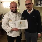 La Delegazione di Rieti in occasione della riunione conviviale degli auguri si è riunita presso il ristorante degli Angeli di Magliano Sabina. Foto 1: il Delegato Francesco Maria Palomba consegna il Diploma di Buona Cucina a Laura Marciani chef del ristorante.