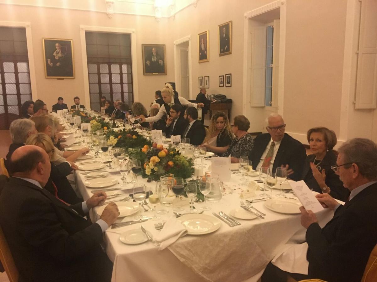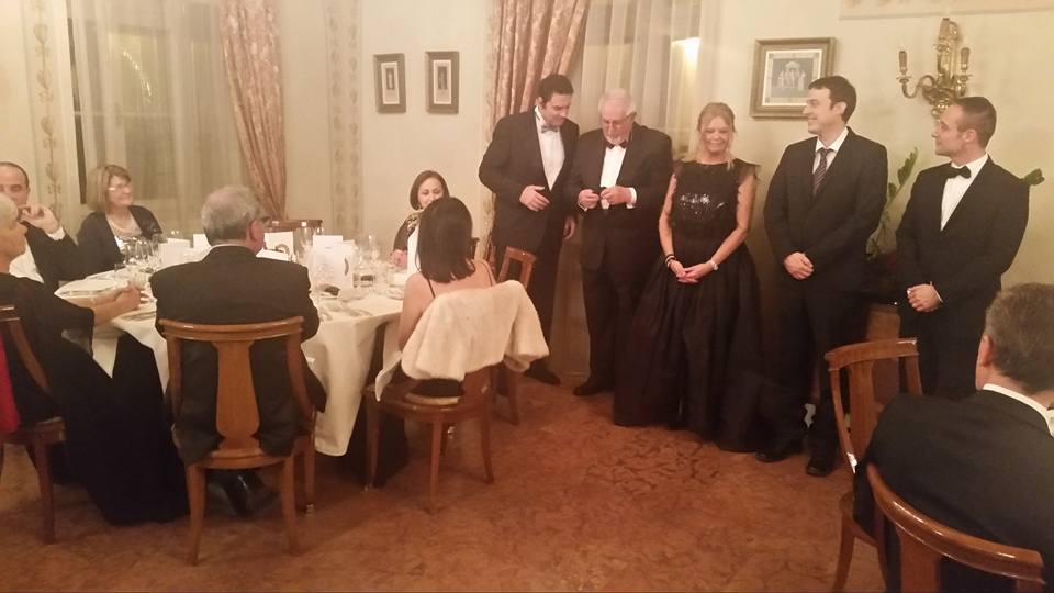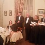 La cena degli Auguri per la Delegazione di Budapest si è svolta presso il prestigioso l’Hotel de Luxe St. George Residence. Foto 1 e 2: l' Ambasciatore Massimo Rustico in compagnia del Delegato Alberto Tibaldi e i nuovi Accademici: Laura Bindi, Otto Maneschg, Gabriele Possenti. Foto 3: particolare della tavola preparata per l'occasione.
