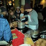 Lo scorso 23 dicembre la Delegazione di Cesena ha presentato in anteprima, con assaggio gratuito, la ricetta natalizia tipicamente Cesenate e, ormai dimenticata, dei "cappelletti in brodo con cedro candito". Foto 1: Accademici all'assaggio. Foto 2: banner. Foto 3: inizio della mescita dei cappelletti.