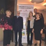Cena inaugurale relativa agli eventi della II Settimana della Cucina Italiana nel Mondo presso il ristorante "Vincenti", Los Angeles. Nella foto: da destra Mariella Salvatori Vice Delegata, il Console Generale Antonio Verde, Francesca Harrison Delegata e i funzionari del Consolato Generale di Los Angeles.