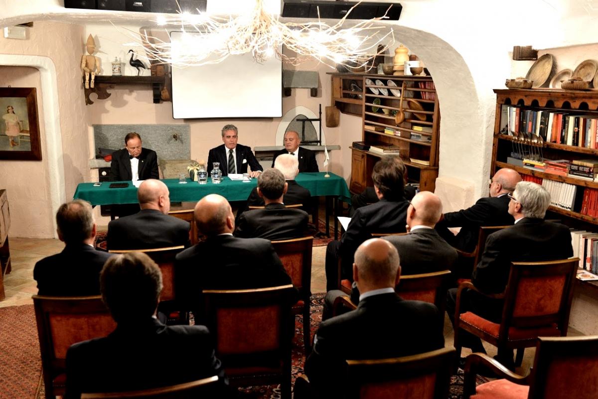Nella splendida location dell'Hotel Bellevue di Cogne il Presidente Paolo Petroni ha consegnato il premio "Giovanni Nuvoletti" a Piero Roullet, titolare dell'Hotel. Occasione importante per la Delegazione di Aosta con la presenza del Presidente dell'Accademia e di Delegati provenienti dal Piemonte e dalla Svizzera. Foto 1: diploma premio "Giovanni Nuvoletti". Foto 2 e 3: momento della riunione. Foto 4: consegna del diploma, in ordine da sinistra il Delegato di Aosta Andrea Nicola, Piero Roullet proprietario dell'Hotel, il Presidente Paolo Petroni. Foto 5: momento di intrattenimento da parte del Presidente. Foto 6: dolce presentato per la cena.