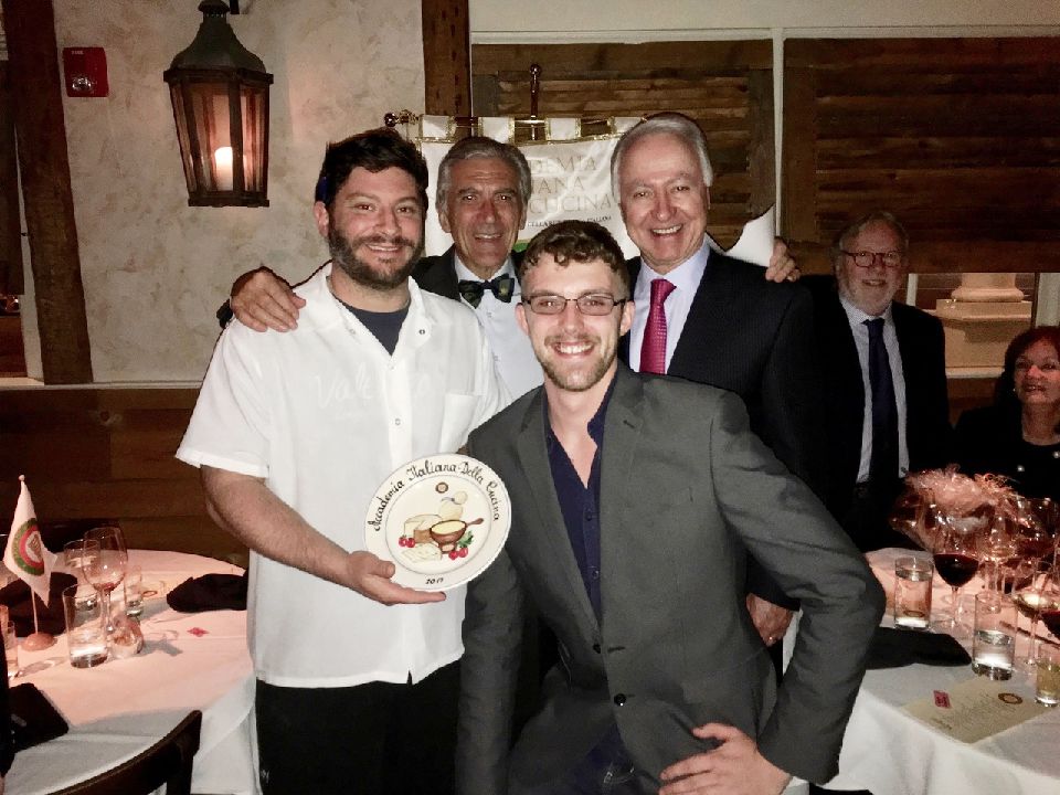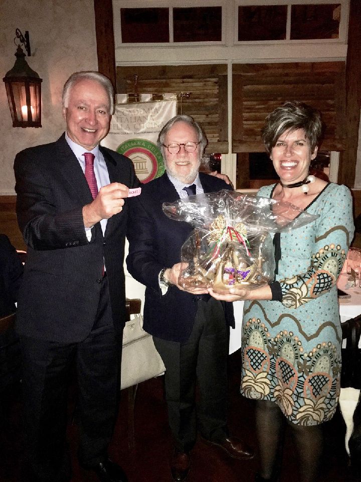 Foto 1: Accademici a tavola. Foto 2: il Delegato Marco Manzini ed il Vice Delegato Jose Favoretto premiano lo chef Mattew Rosekrans. Foto 3: un momento della serata.