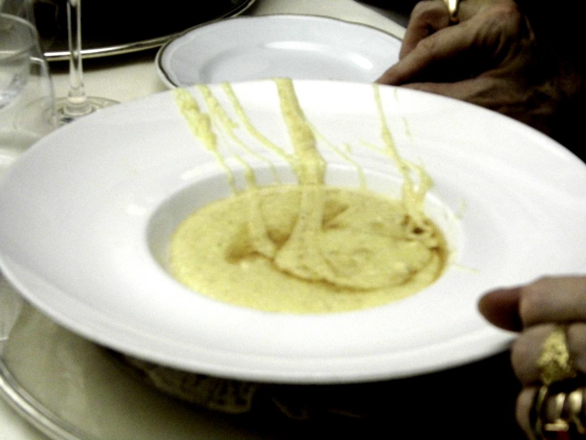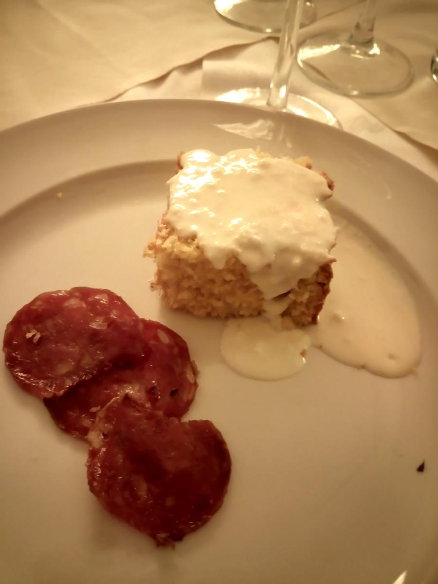 La Delegazione di Biella ha ospitato il Presidente del Centro Studi “Franco Marenghi” nonché membro del Consiglio di Presidenza, Sergio Corbino, a Oropa in un convivio settembrino presso il ristorante "Croce Bianca". Foto 1: chef Ramella. Foto 2: Polenta concia, molto cremosa, amalgamata con abbondante formaggio grasso e servita con burro fuso. Foto 3: Maria Luisa Bertotto, Delegata di Biella. Foto 4: Presidente del Centro Studi Sergio Corbino.