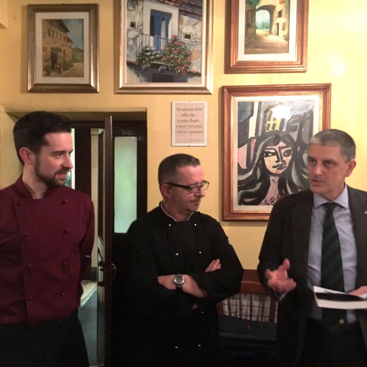 da sinistra Filippo Masini, la Simposiarca Paola Mainardi, il Delegato Ruggero Larco, lo chef Ettore de Benedetto