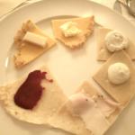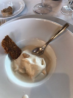 La Delegazione si è riunita per un convivio dedicato alla giornata della cultura 2017 presso la Foresteria di Casa Zonin 1821. Foto 1: tavolo con il Delegato. Foto 2 : consegna da parte del Delegato Renzo Rizzi al Delegato di Venezia Mestre Franco Zorzet di un libro sui formaggi. Foto 3: da sinistra a destra, il Simposiarca Giuseppe Zonin, il cuoco Diego Gottardo, il Delegato Rizzi e il Delegato Zorzet. Foto 4: piatto con la polpetta di bavaria e la ratatouille. Foto 5: tiramisù.