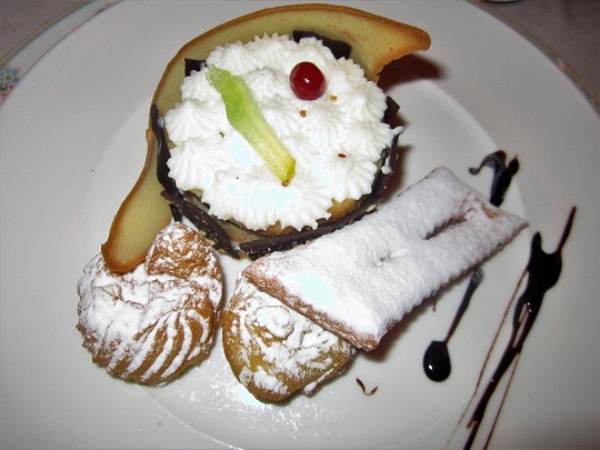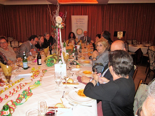 La Delegazione di Siracusa, riunitasi il giorno di martedì grasso presso il ristorante "Dafne", ha dedicato la riunione conviviale al Carnevale. Foto 1: il Delegato Angelo Tamburini con lo chef Franco Blanco, la proprietaria Simona Cunsolino e il maître Antonio Mazzurco. Foto 2: Fantasia di dolcezze di Carnevale. Foto 3: il Delegato con il prof. Corrado Di Pietro, etno-antropologo e scrittore, che ha relazionato su “Antropologia del Carnevale”. Foto 4: involtini siciliani al profumo di agrumi. Foto 5: gli Accademici di Siracusa a tavola. Foto 6: caponata, formaggi tipici siciliani, marmellate di cipolla e di ciliegino. Foto 7: ravioli di ricotta con sugo di maiale.