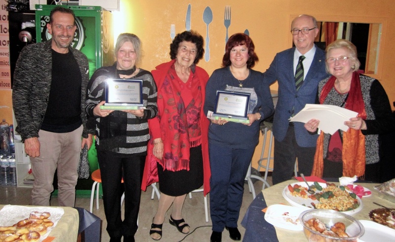 Due significativi riconoscimenti per la Delegazione di Oristano. Il primo riguarda la consegna del Diploma di Buona Cucina al Ristorante Da Renzo che ha per l’ occasione organizzato un pranzo sontuoso con il quale ha messo in risalto le sue eccelse apacità di reperire materie prime di grandissima qualità e freschezza accompagnate da una preparazione delicata e attenta atta a conferire il giusto risalto alle preparazioni. Foto 1: staff del ristorante, al centro il titolare Renzo Corona e ultimo a destra il Delegato di Oristano. Mentre con il secondo evento è stato consegnato il premiato Dino Villani per la bottarga di grande qualità al Nuovo Consorzio Pontis, realtà produttiva ben consolidata nel panorama del settore ittico che può vantare importanti prodotti lavorati, oltre alla pesca diretta dei muggini nello Stagno di Cabras. Foto 2: Paola Meconcelli nel conferimento del premio Dino Villani al Presidente Giuliano Cossu.