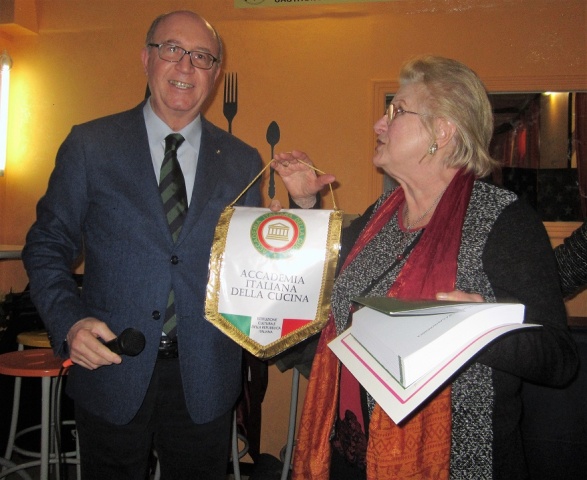 Si è tenuta al ristorante "Al cacciatore" di Castelgomberto la riunione conviviale del solstizio d'inverno della Delegazione dell'Alto Vicentino. In foto 1. Il Delegato Renzo Rizzi consegna le insegne accademiche alla nuova Accademica Roberta Cecchin. Foto 2. (da sinistra a destra) I titolari del Ristorante "Al Cacciatore" e il Delegato Rizzi. Foto 3 e 4. Ossi di maiale e cotechino.