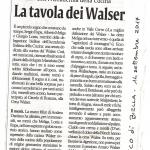 La Delegazione di Biella si è riunita presso il Circolo del Tennis di Rosazza per rivivere la cucina del popolo Walser. Il menu, scelto con preziosa cura ed eseguito con maestria dal cuoco Andrea Dardano, ha ricreato i sapori di questo popolo denominato “ gli agricoltori di montagna”. Foto 1: articolo "La Tavola dei Walser". Foto 2: Miasce, cialde cotte in apposite piastre di ferro arroventate sul fuoco. Foto 3: Wallisschuppa zuppa di pane di segale, cipolla, toma e pancetta con burro di alpeggio profumato alla cannella. Foto 4: flan di formaggio Bettelmatt accostato a una salsa di pere e di mirtilli. Foto 5: Mailginiturta torta di Alagna con salame, toma, mele e fichi.