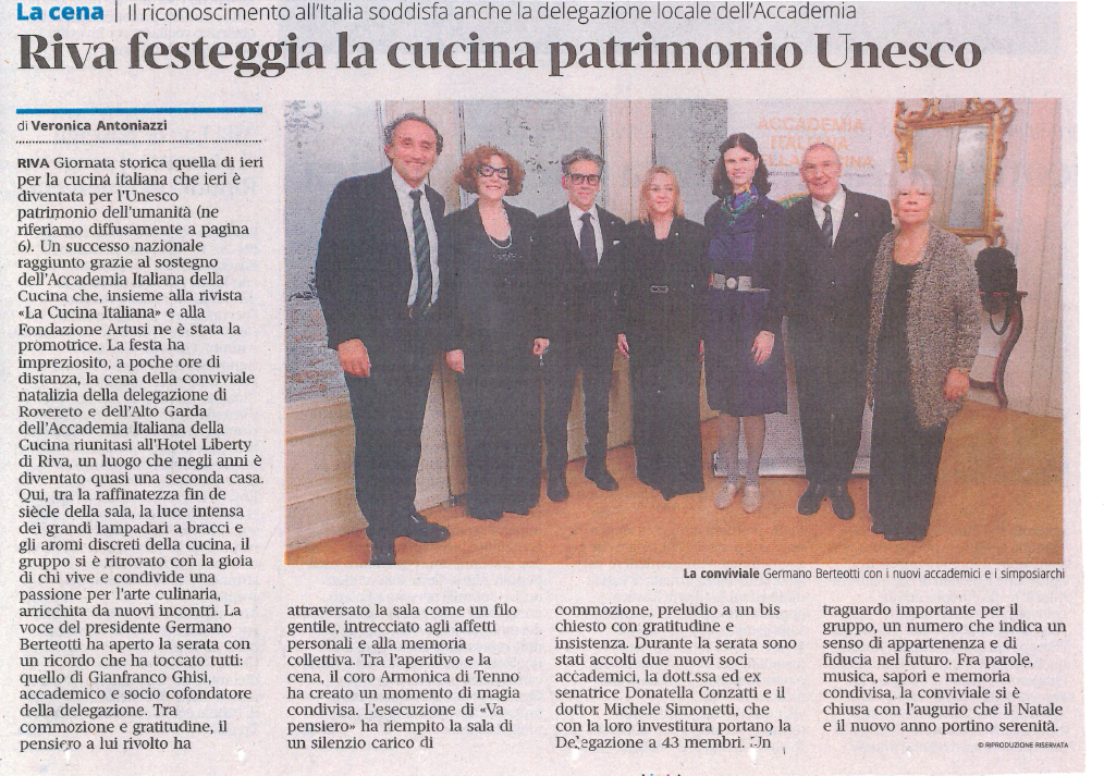 Delegazione di Rovereto e del Garda Trentino: riunione conviviale e consegna Diploma di Buona Cucina